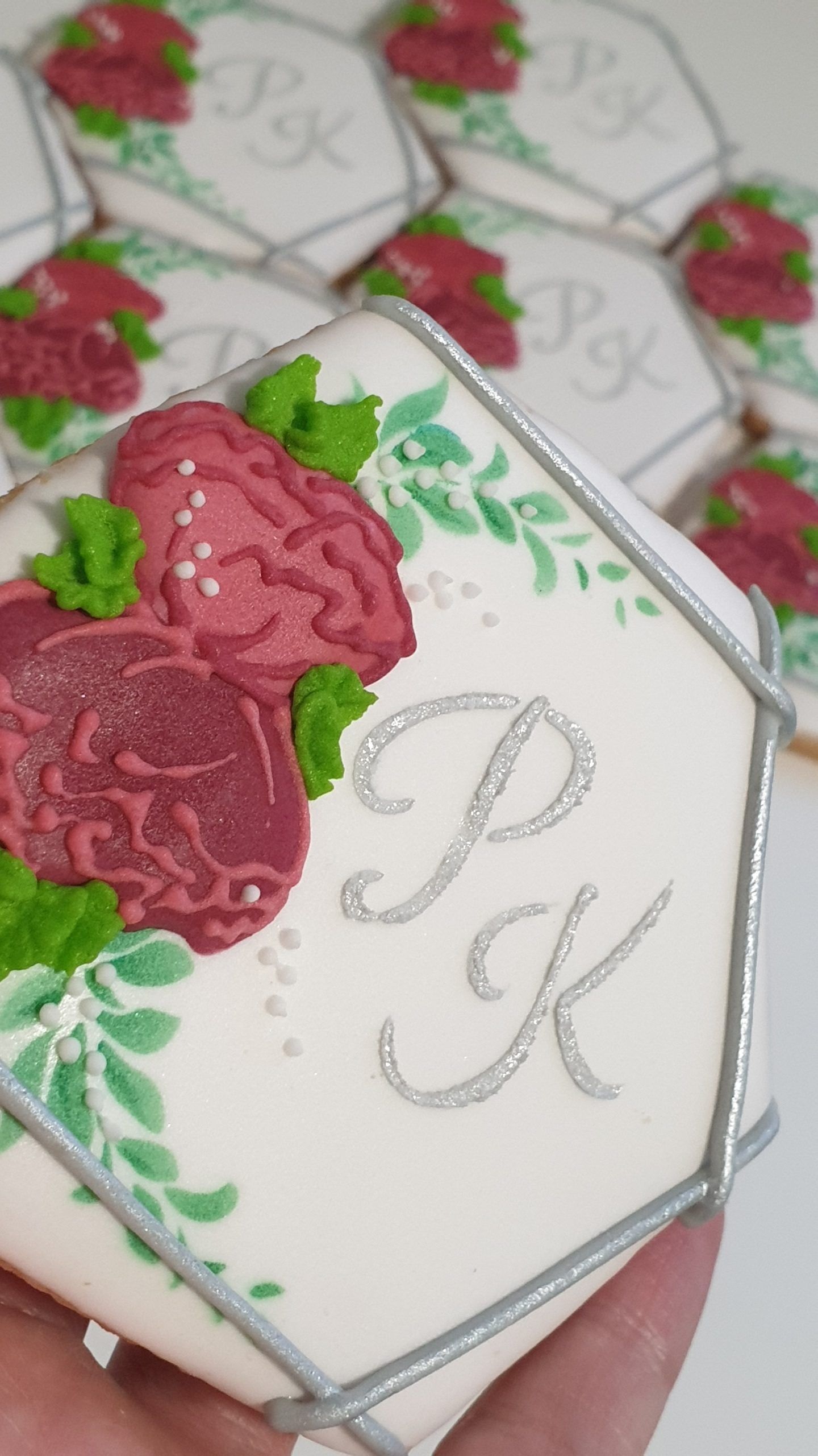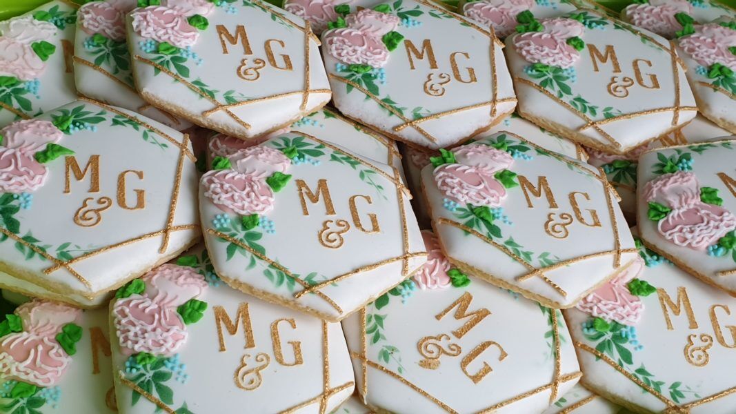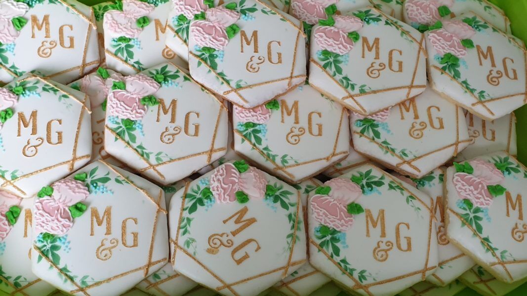 Ciasteczka ślubne – Inicjały z motywem roślinnym