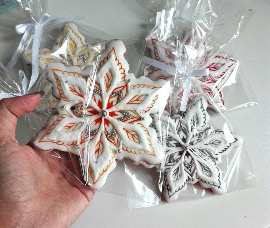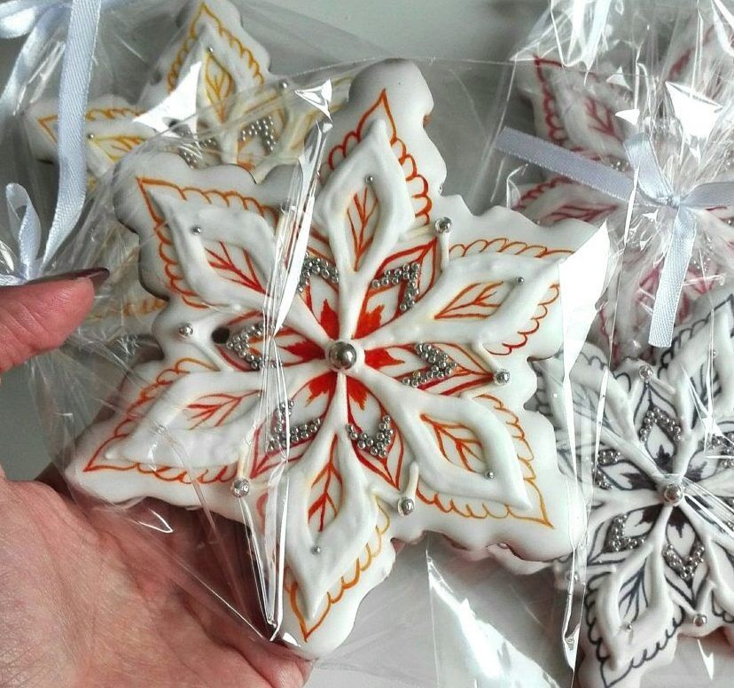 Zaprezentowane przeze mnie świąteczne pierniczki w kształcie dużej śnieżynki, to jedynie jedna z propozycji. W moim sklepiku pełnym ciasteczek znajdziesz również wiele innych wzorów. Oczywiście wypieki wykonuję na zamówienie, dlatego też mogę stworzyć dla Ciebie coś wyjątkowego, całkiem innego, personalizowanego. Zastosowanie nowych technologii pozwala mi na wykonanie foremek w każdym kształcie i rozmiarze, a różnorodne sposoby dekoracji pozwalają na uzyskanie właściwie każdego wzoru. Dlatego jeśli jesteś zainteresowany Personalizowanymi ciasteczkami czy pierniczkami, napisz do mnie korzystając z formularza kontaktowego.