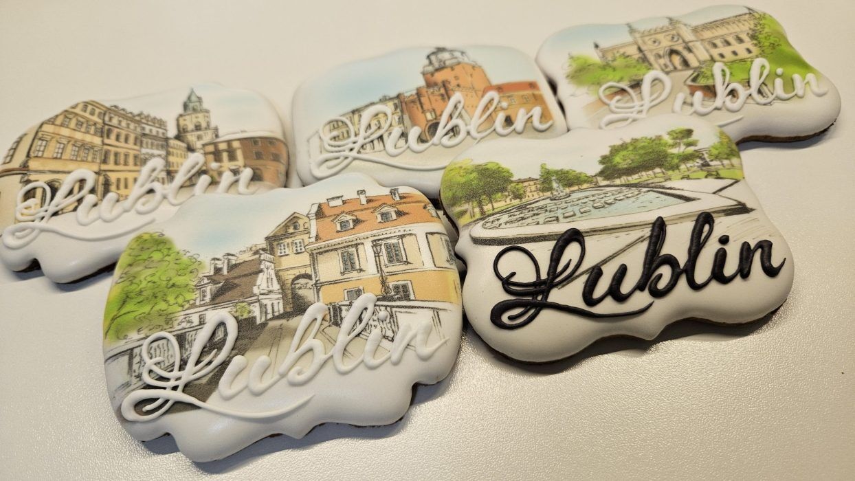 Ręcznie dekorowane Pierniki pamiątkowe – Lublin to moja propozycja pysznych pierniczkowych upominków dla gości i turystów przebywających w Lublinie. Proponowane przeze mnie pierniczki mają kształt etykiety, oczywiście dekorowanej ręcznie lukrem królewskim, na której została naniesiona grafika przedstawiająca wybrane zabytki Lublina oraz duży napis również wykonany ręcznie. Wykorzystane grafiki są mojego autorstwa, więc jeśli byłbyś zainteresowany innymi wzorami, zabytkami czy grafikami – zapraszam do współpracy. Pierniczki są dość duże, mają wielkość ok. 10cm. Nie proponuję ich z ciasta kruchego, ponieważ turyści czy Wasi Lubelscy goście na pewno chętnie zabrali by je ze sobą do domów, czy jako upominki dla rodziny. Moje najlepsze polskie pierniczki, mają aż 12 miesięcy terminu przydatności do spożycia, dlatego doskonale nadadzą się jako pyszny upominek.
