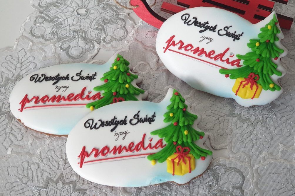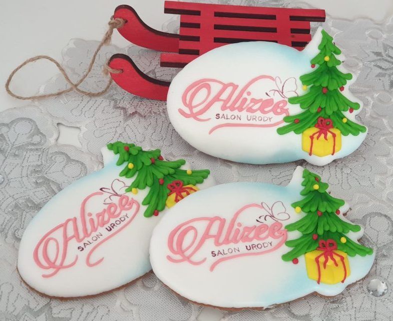 Zaprezentowane przeze mnie świąteczne Pierniki reklamowe – Logo z Choinką, to jedynie jedna z propozycji. W moim sklepiku pełnym ciasteczek znajdziesz również wiele innych wzorów. Oczywiście wypieki wykonuję na zamówienie, dlatego też mogę stworzyć dla Ciebie coś wyjątkowego, całkiem innego, personalizowanego. Zastosowanie nowych technologii pozwala mi na wykonanie foremek w każdym kształcie i rozmiarze, a różnorodne sposoby dekoracji pozwalają na uzyskanie właściwie każdego wzoru. Dlatego jeśli jesteś zainteresowany Personalizowanymi ciasteczkami czy pierniczkami, napisz do mnie korzystając z formularza kontaktowego.