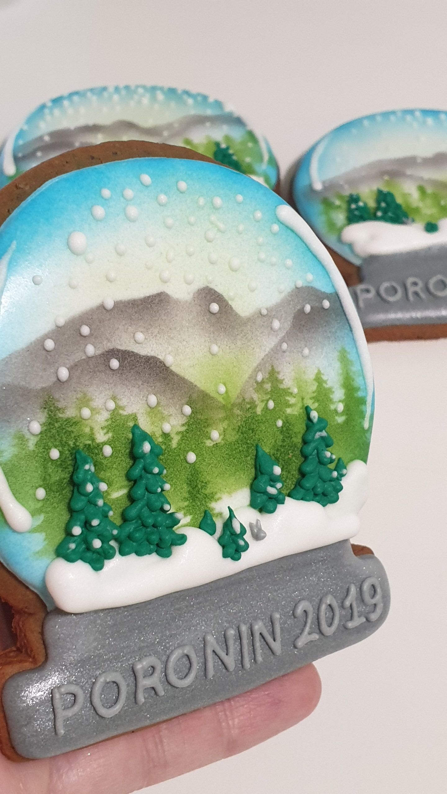 Ręcznie dekorowane Pierniki świąteczne – kula śniegowa to moja odpowiedź na prawdziwy szał na słodycze i smakołyki w okresie świąt Bożego Narodzenia. Świąteczna rodzinna atmosfera, prezenty i chęć dzielenia się wszystkim tym co najlepsze jest obecna w każdym domu i firmie. Najbliżsi szukają przesłodkich upominków, często personalizowanych, które wywołają najlepsze emocje u osoby obdarowanej. Pierniczek w kształcie kuli śniegowej może zawierać logo firmy umieszczone w kuli śniegowej w części centralnej lub jedynie nazwę firmy na srebrnej stopce pod dekoracją Polskich Tatr.