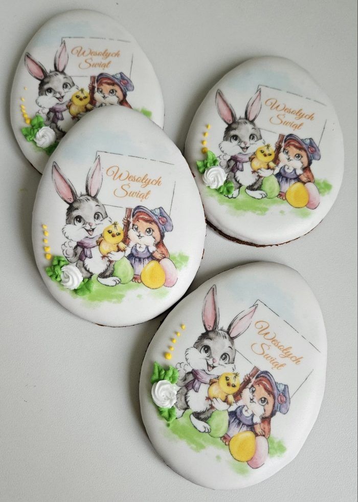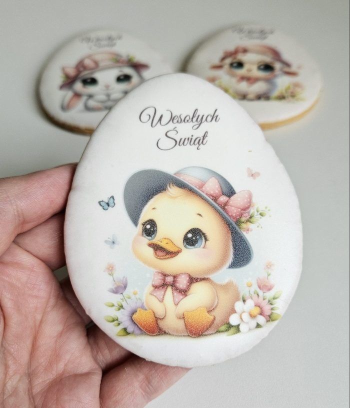 Zaprezentowane przeze mnie ciasteczka wielkanocne, to jedynie jedna z propozycji. W moim sklepiku pełnym ciasteczek znajdziesz również wiele innych wzorów. Oczywiście wypieki wykonuję na zamówienie, dlatego też mogę stworzyć dla Ciebie coś wyjątkowego, całkiem innego, personalizowanego. Zastosowanie nowych technologii pozwala mi na wykonanie foremek w każdym kształcie i rozmiarze, a różnorodne sposoby dekoracji pozwalają na uzyskanie właściwie każdego wzoru. Dlatego jeśli jesteś zainteresowany Personalizowanymi ciasteczkami czy pierniczkami, napisz do mnie korzystając z formularza kontaktowego.