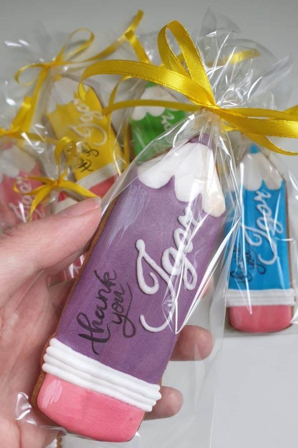 Ręcznie dekorowane Pierniczkowe Podziękowania dla nauczyciela – Kredka to moja propozycja na słodki upominek dla nauczyciela, który może zostać wręczony z okazji Dani Nauczyciela czy z okazji zakończenia roku szkolnego. Uczniowie zarówno klas starszych jak i młodszych często w podziękowaniu za wspólnie spędzony rok, czy nawet lata, nauki okazują wdzięczność nauczycielom. Od zawsze nauczycielom wręczane są kwiaty, słodycze, czasem drobna biżuteria, upominki są wręczane osobiście lub w imieniu całej klasy. Moją propozycją są personalizowane pierniczki w kształcie kredki z dedykacją.